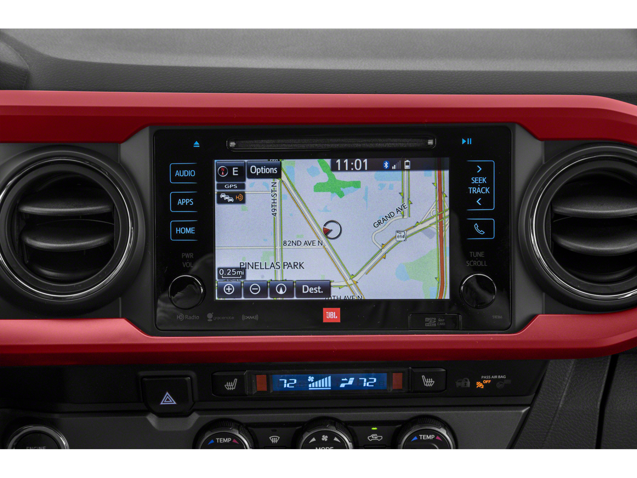 - Radio: Entune Premium w/AM/FM/CD/Nav/App Suite -inc: 6 speakers, 7" high-resolution touch-screen display w/split screen, auxiliary port, USB media port, Siri eyes free, advanced voice recognition, Bluetooth® hands-free phone capability, phone book access and music streaming, cache radio, HD Radio, HD predictive traffic and doppler weather overlay and SiriusXM satellite radio w/complimentary SiriusXM All Access 90-day trial subscription included