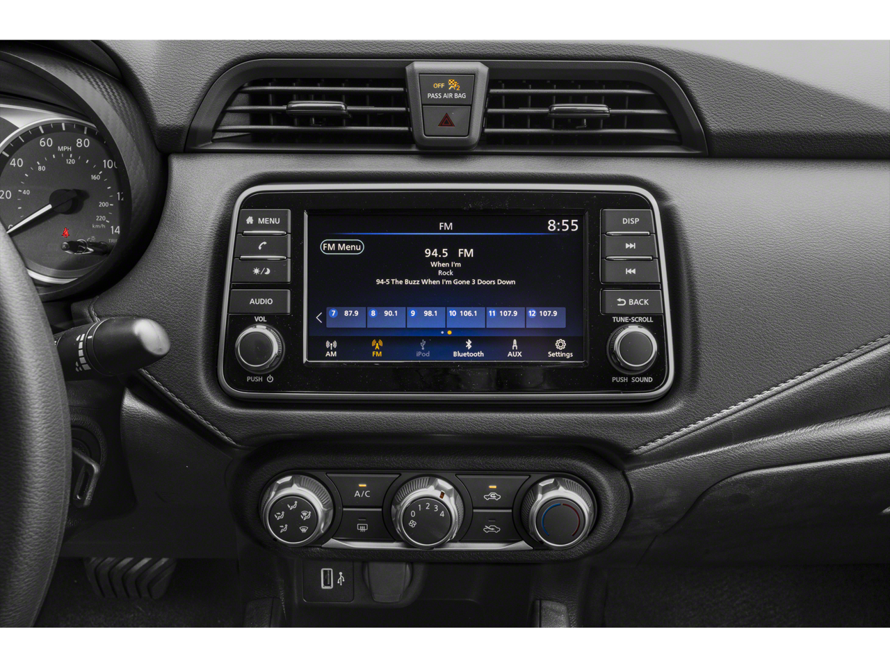 - Radio: AM/FM Audio System -inc: RDS, MP3, aux-in, 7" color touchscreen display, Bluetooth® hands-free phone system, streaming audio via Bluetooth®, interface for iPod and other compatible devices, hands-free text messaging assistant, Siri Eyes Free/Google Assistant voice recognition, 4 speakers and 3 USB ports (2-charge only)