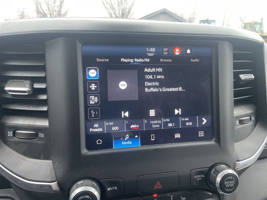 2 Way Rear Headrest Seat, 2nd Row In Floor Storage Bins, 4 Way Front Headrests, 40/20/40 Split Bench Seat, 4G LTE Wi-Fi Hot Spot, 8.4 Touchscreen Display, Anti-Spin Differential Rear Axle, Apple CarPlay, Auto Power-Folding Mirrors, Auxiliary Switches Prep, Big Horn IP Badge, Black Exterior Mirrors, Bluetooth® Handsfree Phone & Audio, Center Hub, Clearance Lamps, Connectivity - US/Canada, Dash Pass Thru Wire Circuits, Dual Glove Boxes, Exterior Mirrors Courtesy Lamps, Exterior Mirrors w/Heating Element, Exterior Mirrors w/Supplemental Signals, Foam Bottle Insert (Door Trim Panel), Footwell Courtesy Lamp, For Details, Visit DriveUconnect.com, For More Info, Call 800-643-2112, Forward & Reverse Utility Lights, Front Armrest w/Cupholders, Front Center Seat Cushion Storage, Front Fog Lamps, Front Seat Back Map Pockets, Global Telematics Box Module (TBM), Glove Box Lamp, Google Android Auto, GPS Antenna Input, Heated Front Seats, Heated Seats & Wheel Group, Heated Steering Wheel, I/P Mounted Auxiliary Switches, Integrated Center Stack Radio, Integrated Voice Command w/Bluetooth®, Leather Wrapped Steering Wheel, Level 1 Equipment Group, Locking Lower Glove Box, Manual Adjust 4-Way Front Passenger Seat, Mirror Running Lights, Power 2-Way Driver Lumbar Adjust, Power Adjust 8-Way Driver Seat, Power Adjust Mirrors, Power Adjustable Convex Aux Mirrors, Power Heated Fold Telescope Mirrors, Power Telescoping Mirrors, Premium Cloth 40/20/40 Bench Seat, Quick Order Package 2GZ Big Horn, Radio: Uconnect 5 W w/8.4 Display (A62), Rear 60/40 Folding Seat, Rear Dome w/On/Off Switch Lamp, Remote USB Port - Charge Only, Selectable Tire Fill Alert, SiriusXM Radio Service, SiriusXM Satellite Radio, Snow Chief Group, Steering Wheel Mounted Audio Controls, Storage Tray, Wheels: 18 x 8.0 Polished Aluminum.